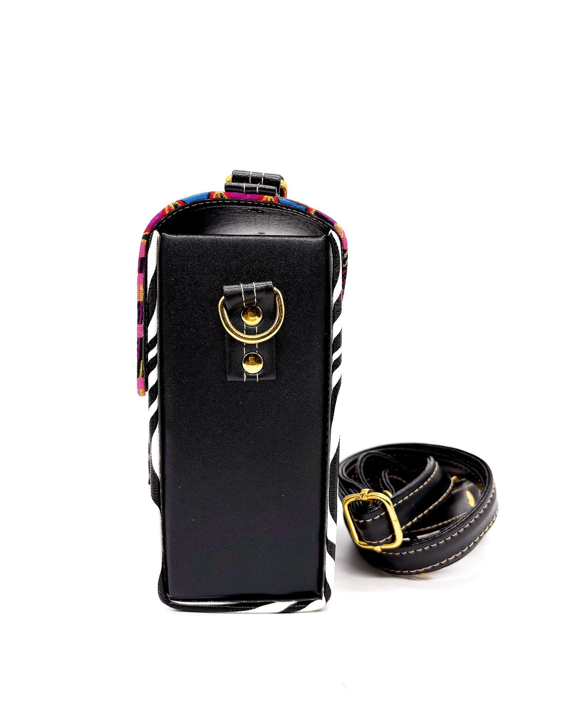 Yakira is an eye-catching vegan leather handbag, accented with a touch of African Gold Wax fabric. Its magnetic clasp and adjustable strap offer security and comfort, while its namesake, a strong woman, imbues it with a sense of fierceness. Perfect for any outing, Yakira will make you feel beautifully loved.